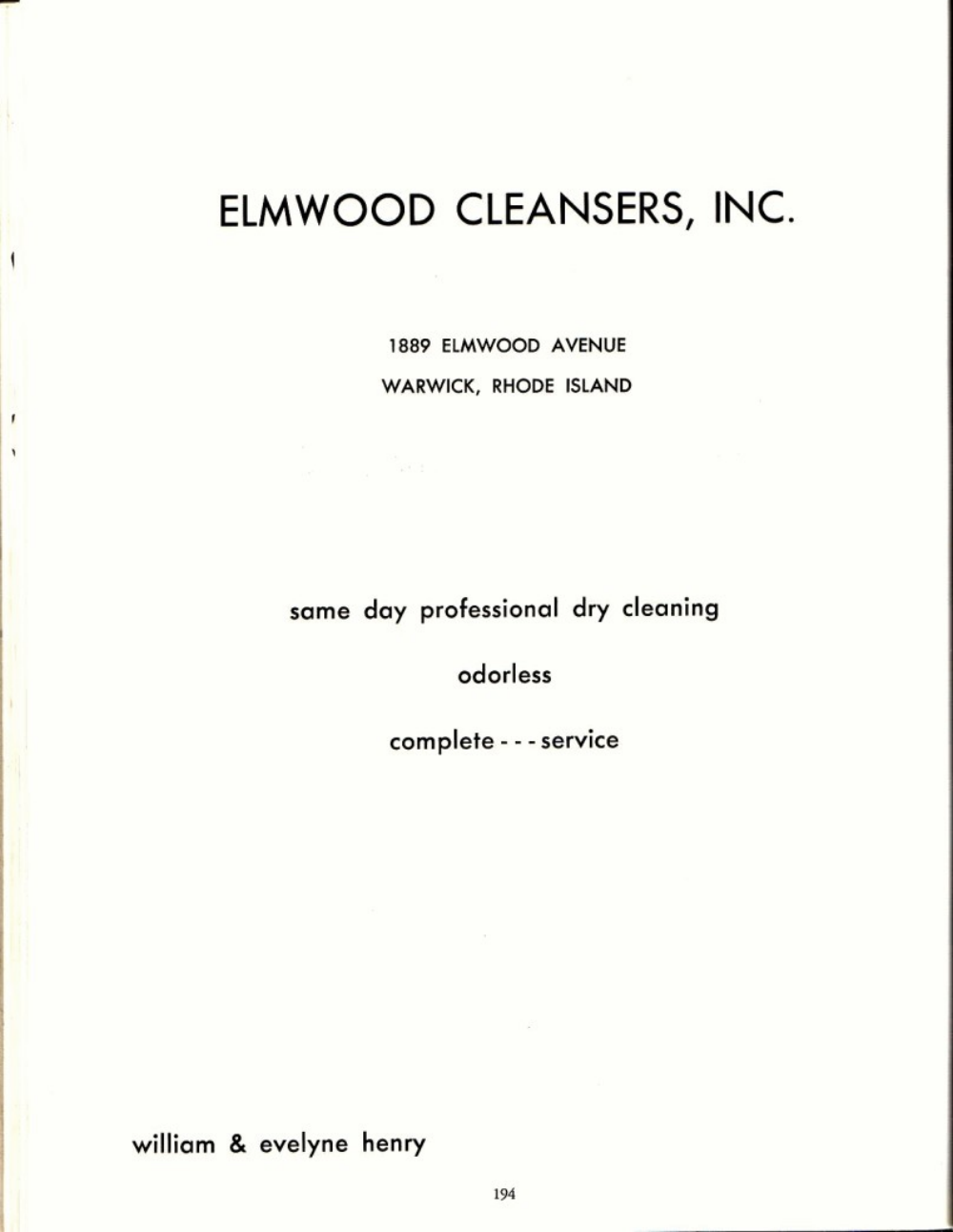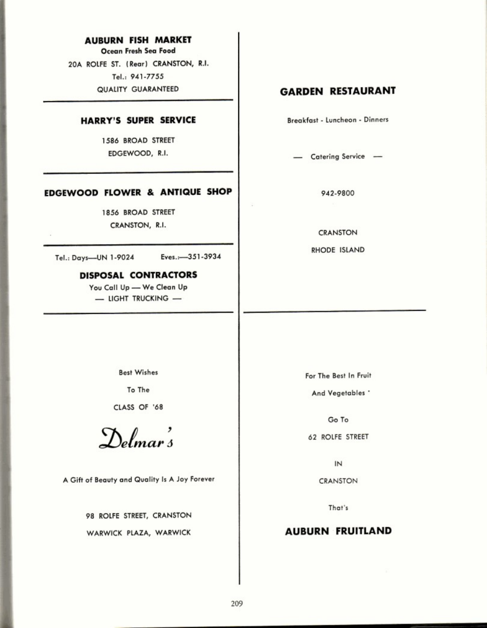 Ads - T.D. Brown, The Cranston Mirror, Park Fabrics, Ezquisite Hair Fashons, Mr & Mrs Rocco Mendillo, Bomar Pharmacy, Sal's Beauty Salon |