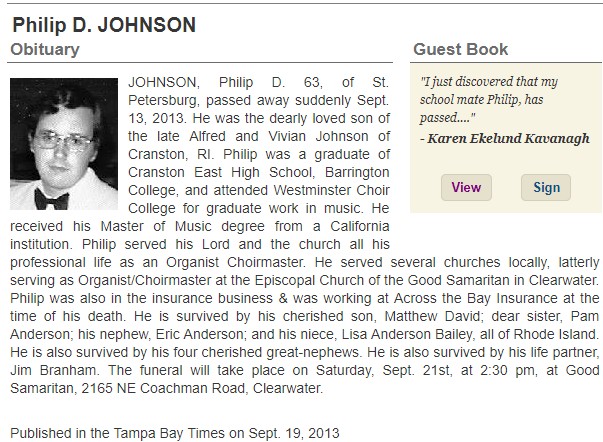 Philip David Johnson St. Petersburg, FL. 1950 to September 13, 2013 |